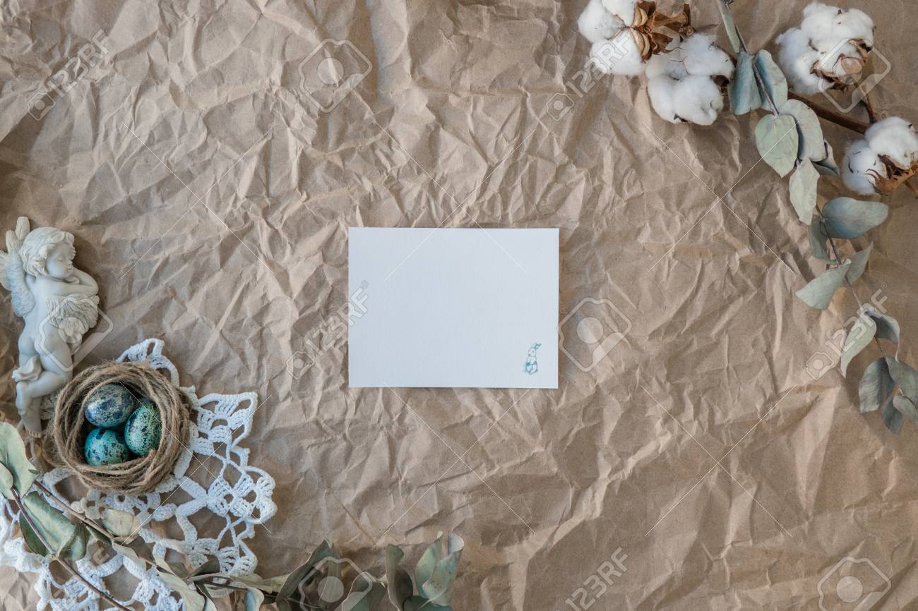 Easter Holiday Background With Poster Mock Up And Modern Eggs