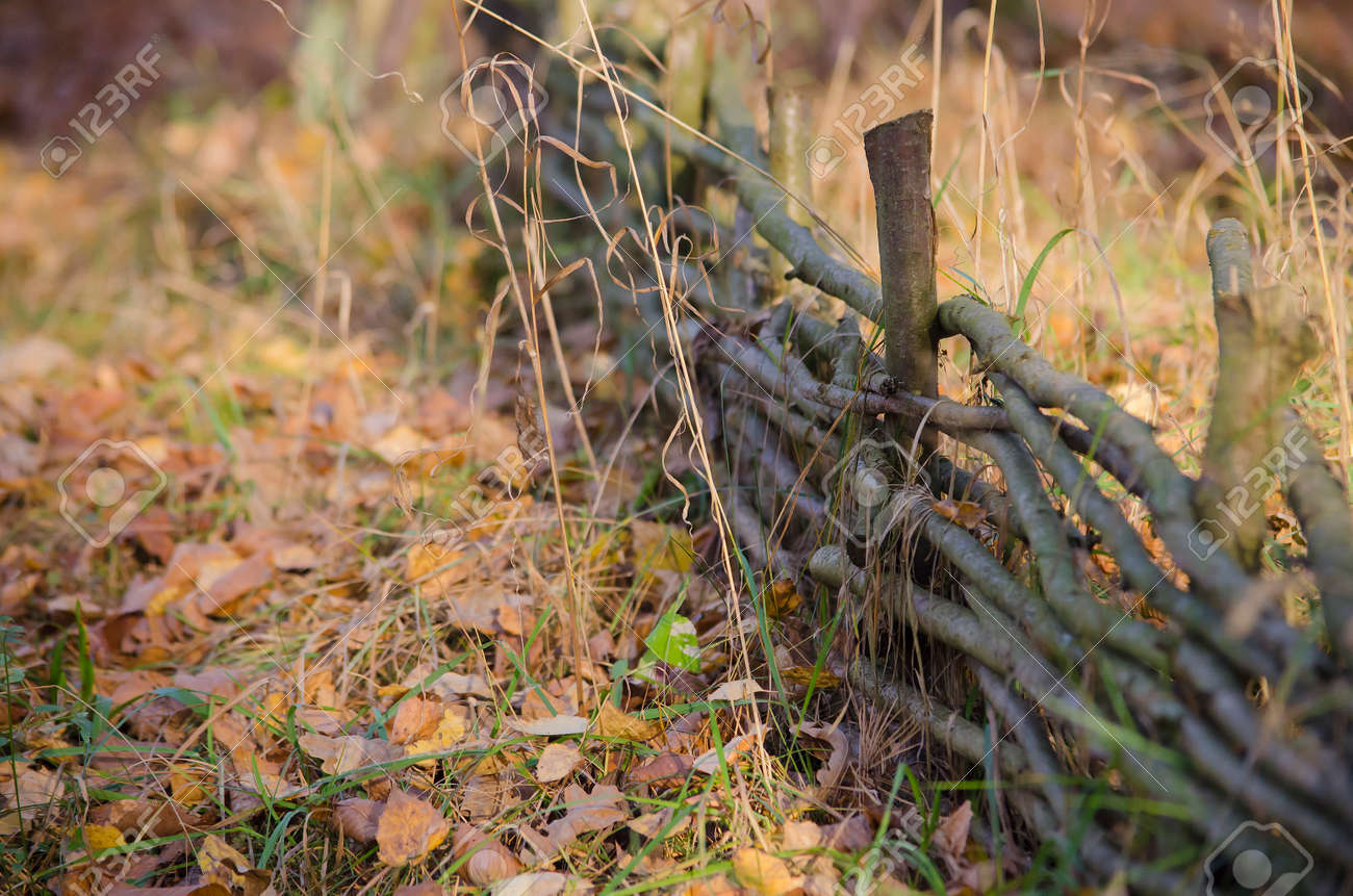 Wicker Decorative Fence From Branches Close Up Garden Decorations