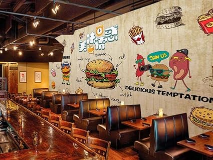 Jiahuade Papel Tapiz 3d Modern Burger Fast Food Snack Bar