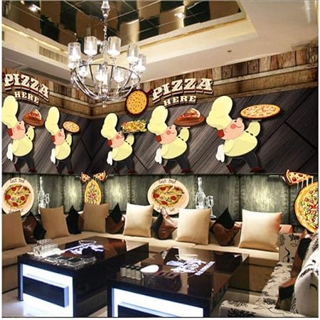 Hand Painted Cartoon Retro Personality Pizza Wall Paper 3d Western
