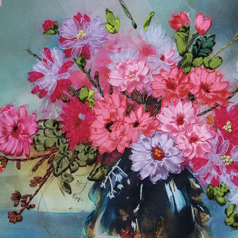 3d Ribbon Embroidery Diy Canvas Painting Hd Colored Print Flowers