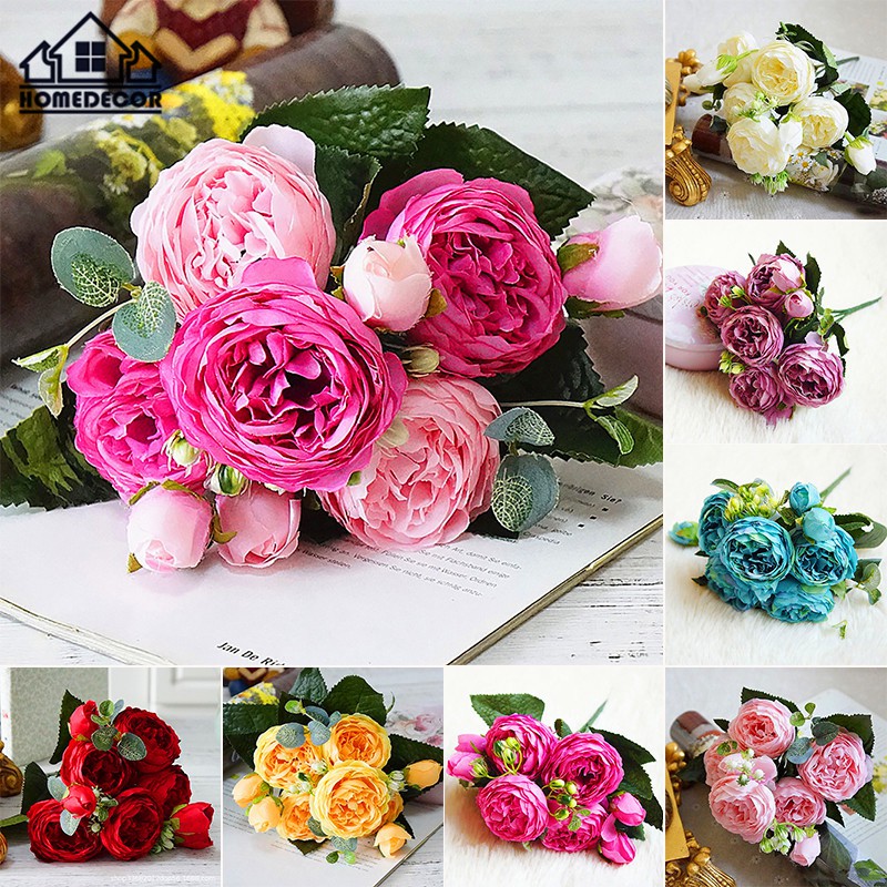 Hd 5 Rose Artificial Flowers Wedding Bouquets Silk Plastic Roses