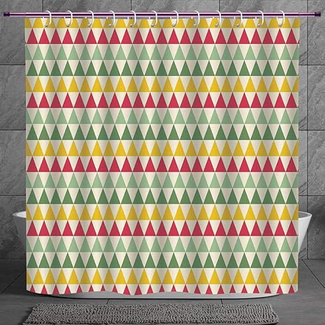 Polyester Shower Curtain 2 0 Retro Colorful Triangles Sharp