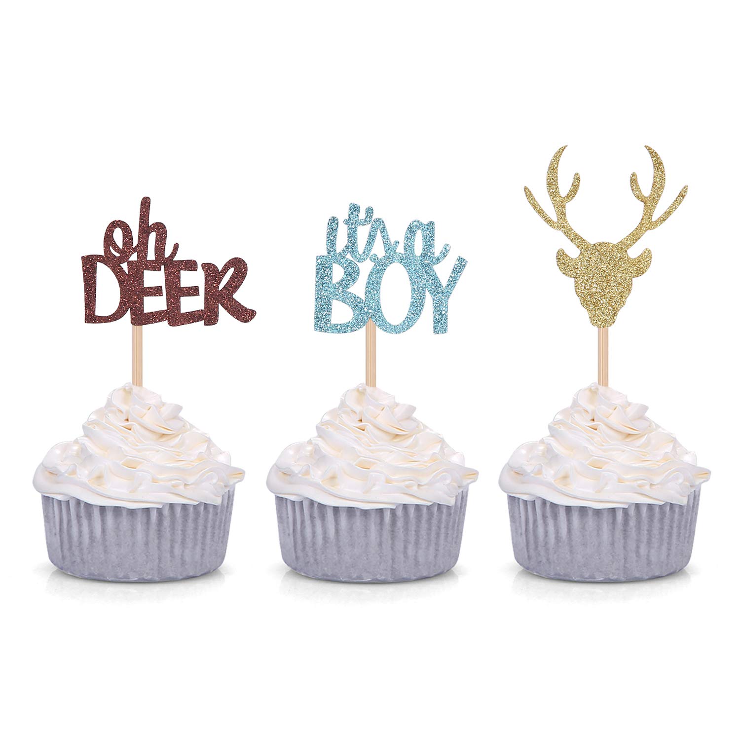 Oh Deer It S A Boy Cupcake Toppers For Male Baby Shower Party