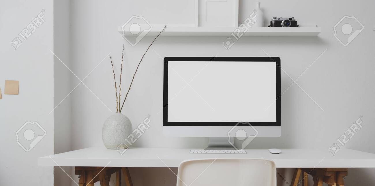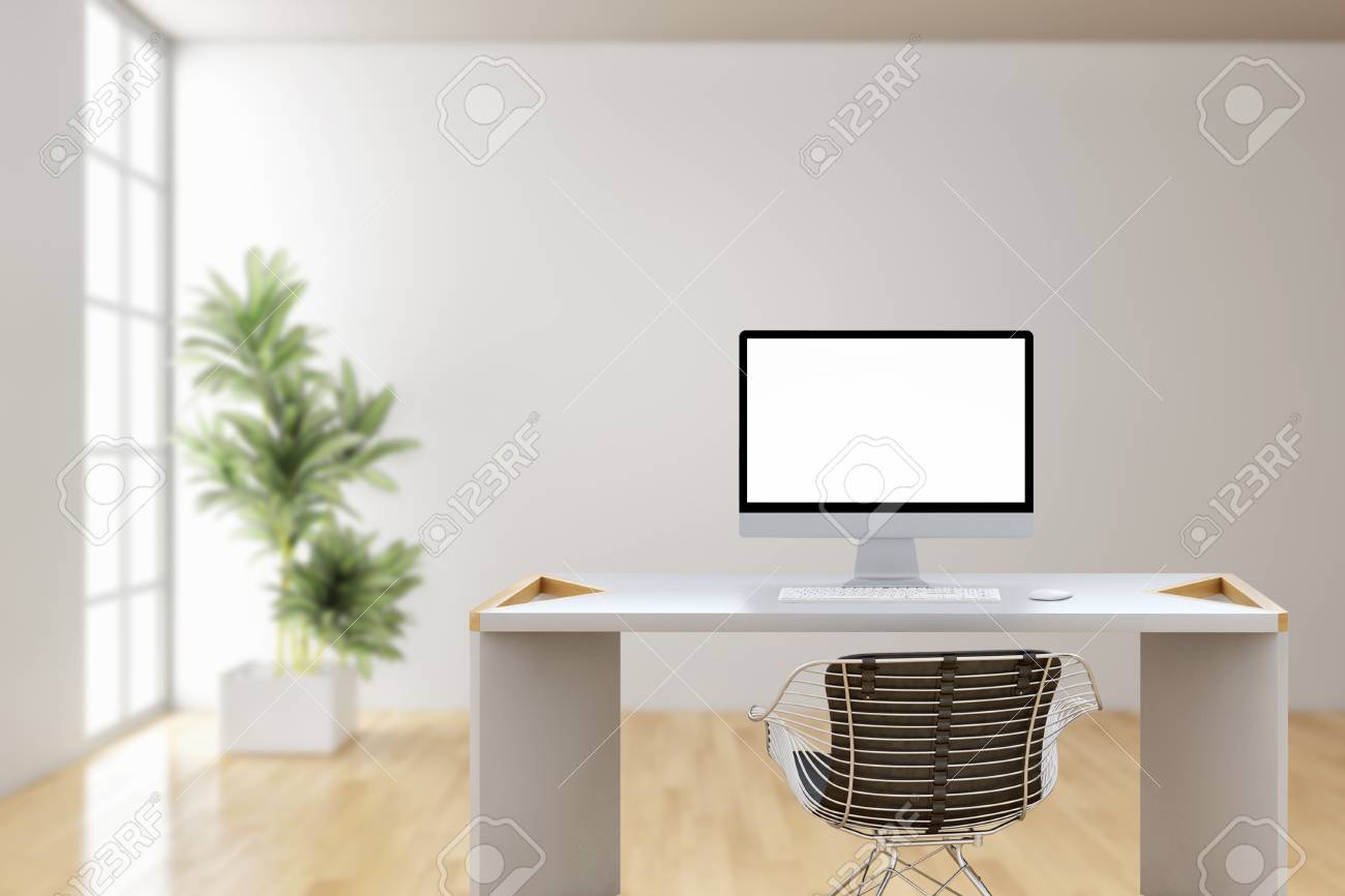 Modern Workspace Blank Screen Desktop Computer Stock Photo Edit