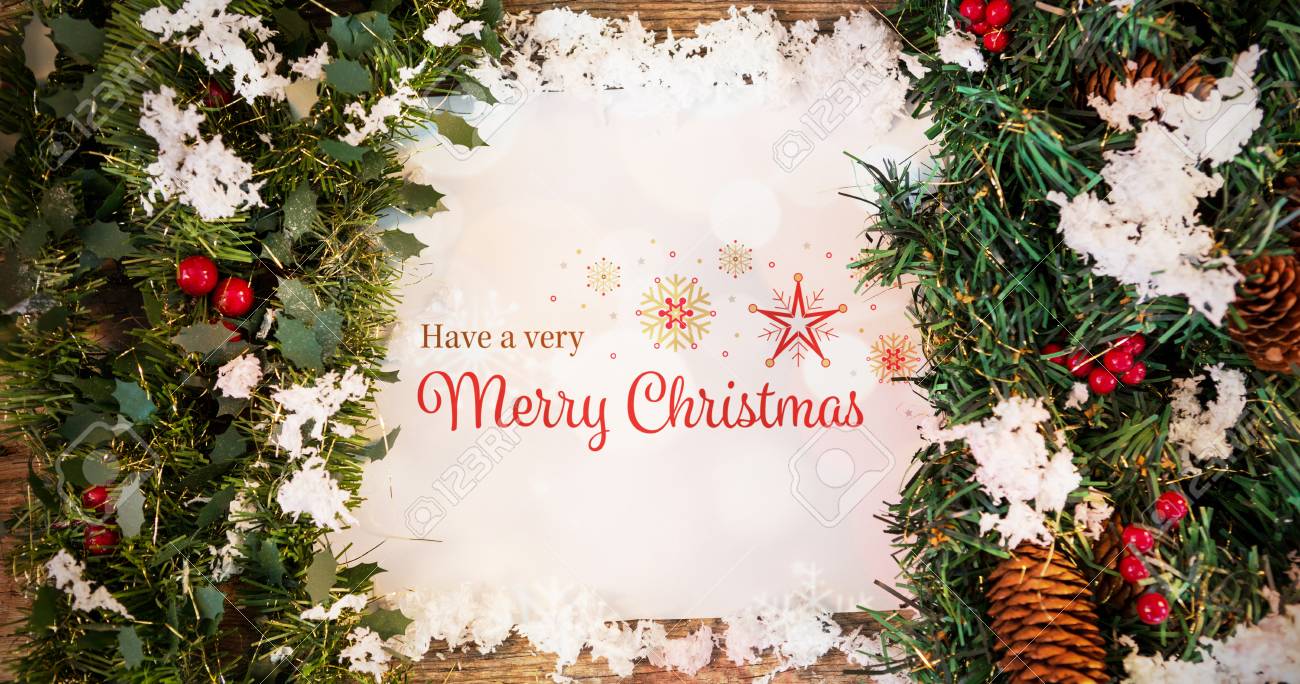 Christmas Card Against Christmas Decoration With Fake Snow On