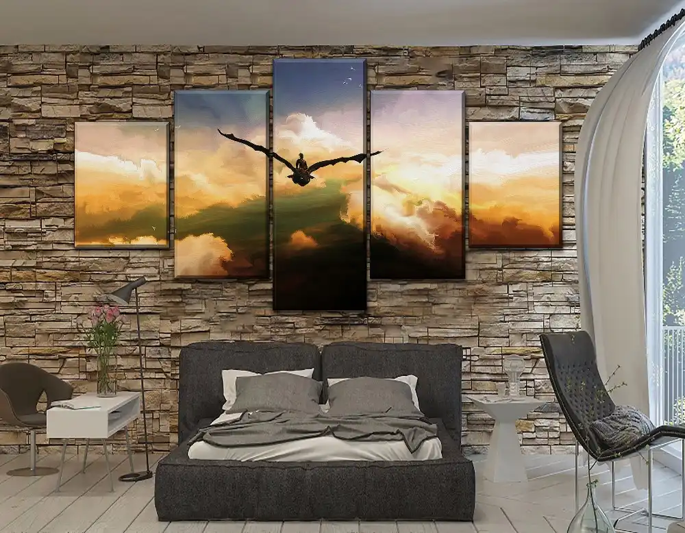 Decoration Murale Pour Chambre D Enfants 5 Panneaux Dessin Anime