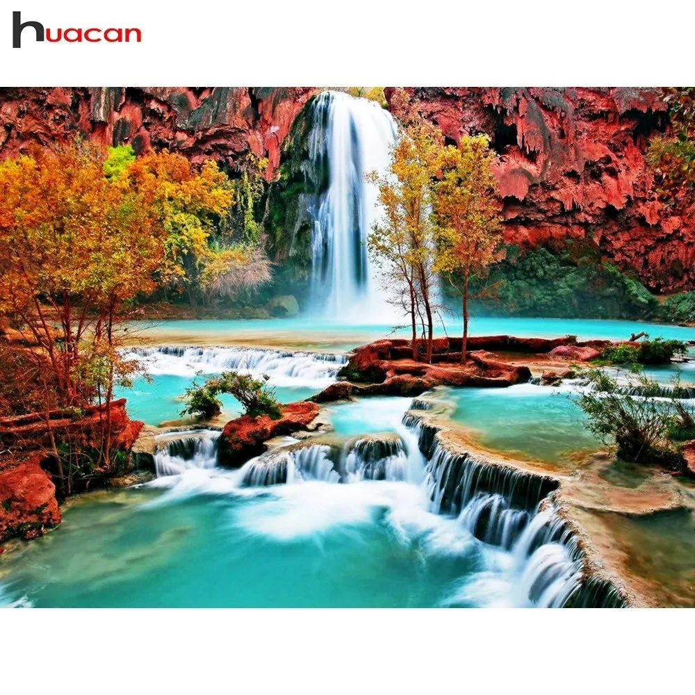 Huacan 5d Diy Diamond Painting Waterfall Full Square Diamond