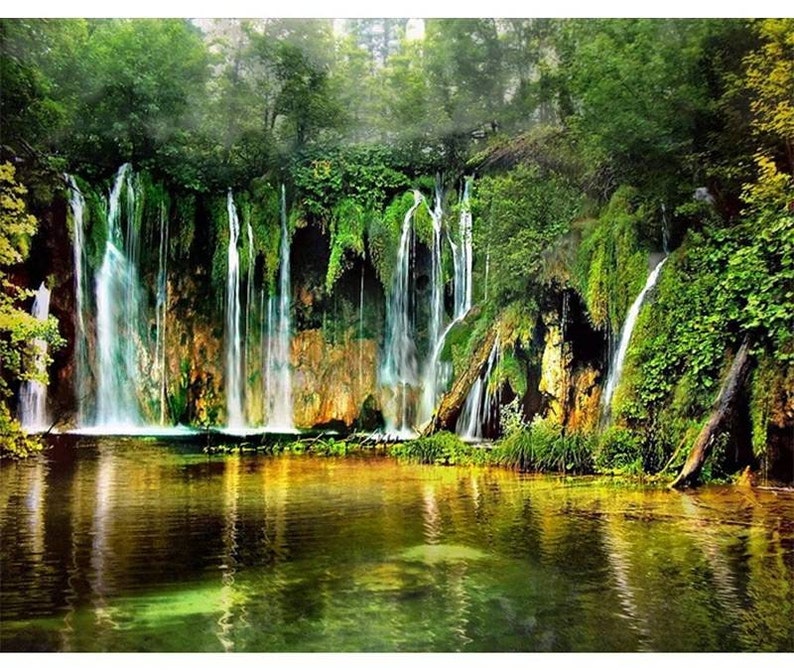 5d Diy Diamond Painting Waterfall Landscape Cross Stitch Full Etsy