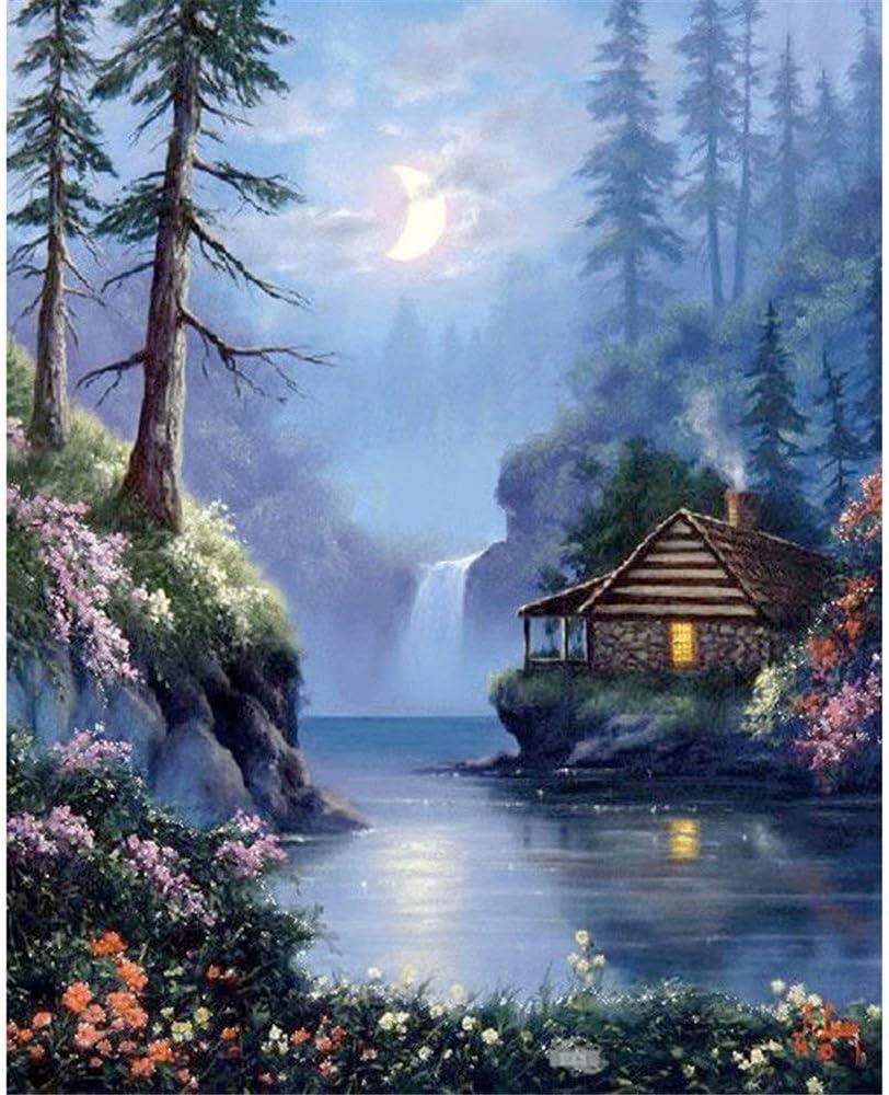 Full Square Drill Diamond Embroidery Waterfall House 5d Diy