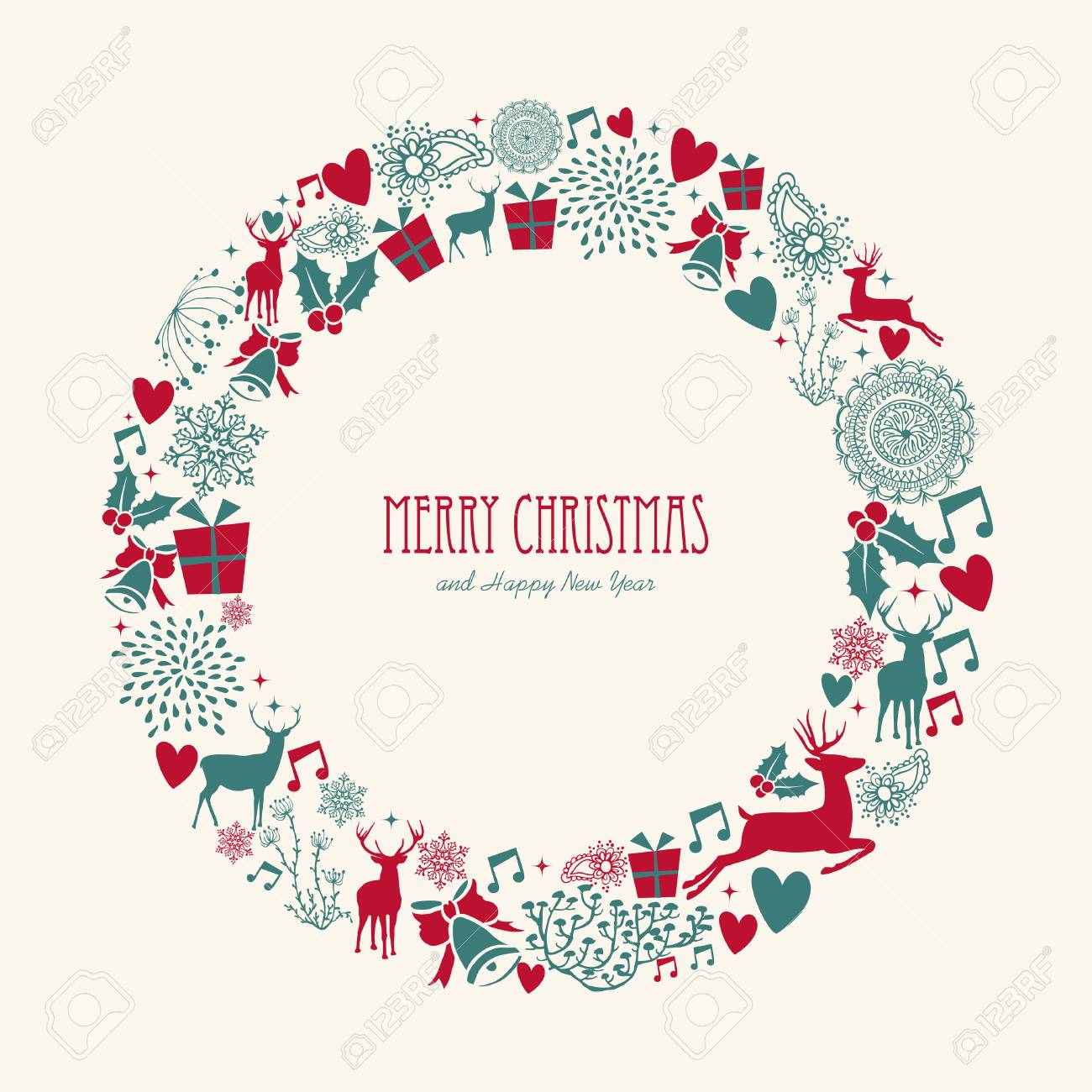 Merry Christmas Decoration Elements Circle Mistletoe Composition