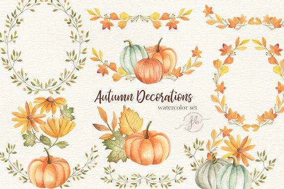 Autumn Watercolor Clipart Fall Digital Download Planner Etsy