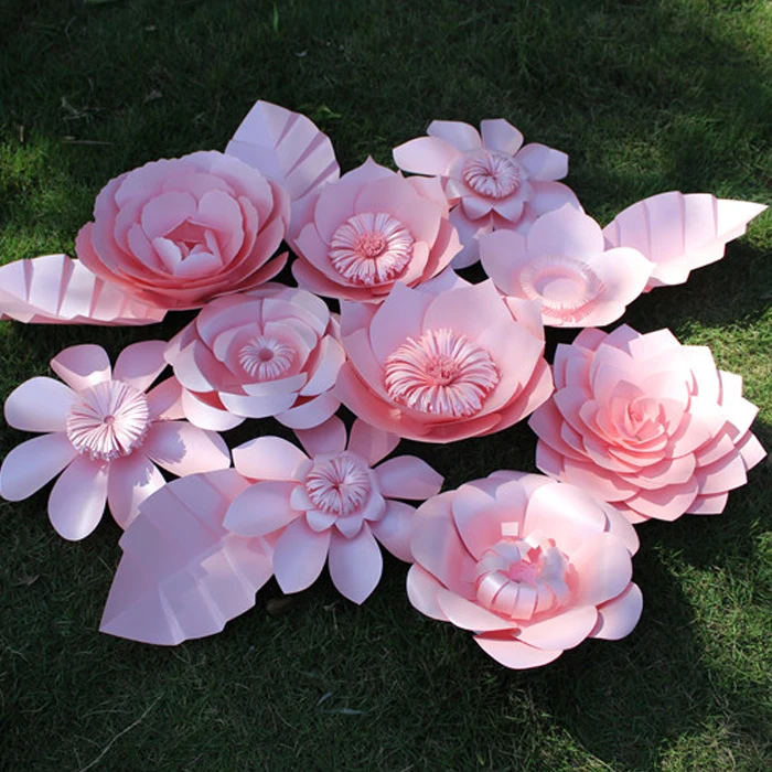 44pcs Set Handmade Cardboard Giant Paper Flowers Wedding Backdrop