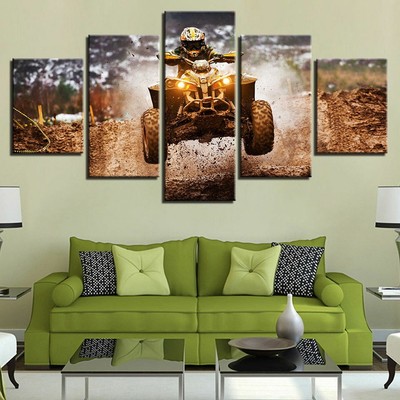 Atv Motocross Quadricycle Bike 5 Panel Canvas Wall Art Home Decor