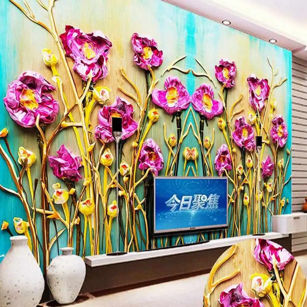 Purple Flower Modern Wallpaper Hd Photo Mural Papel De Parede Para