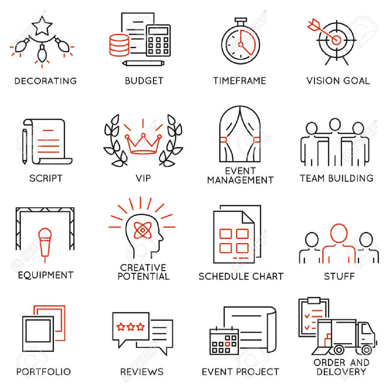 Set Of 16 Thin Icons Related To Event Management Event Service