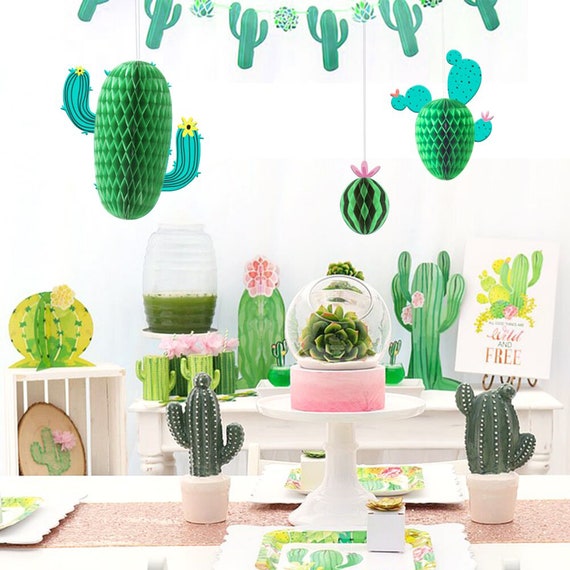 Cactus Honeycomb Decorations Summer Tropical Diy Fiesta Etsy