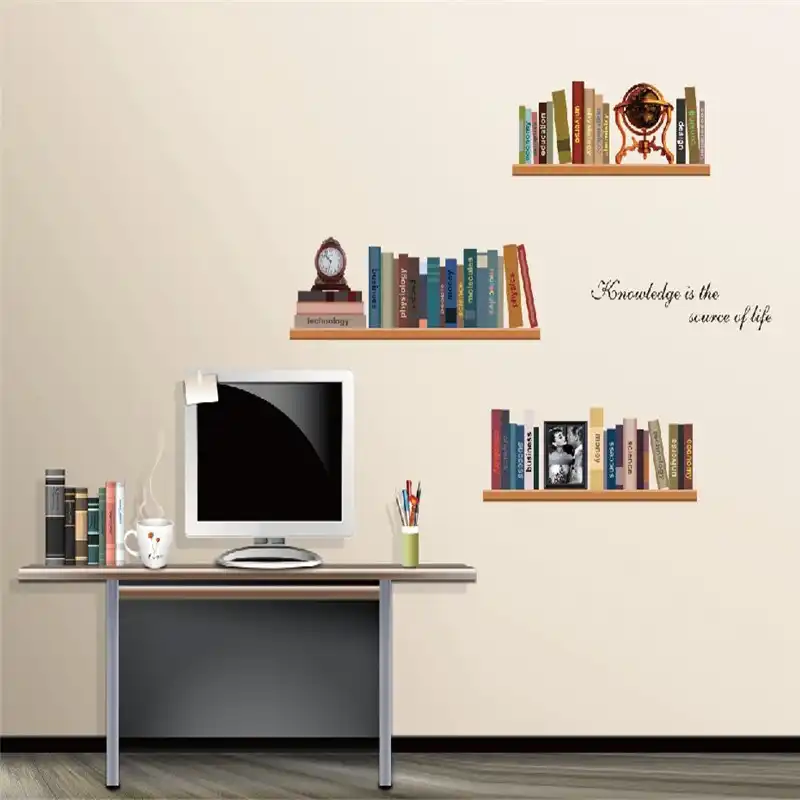 Elegant Books Shelf Wall Stickers Home Decoration For Study Room