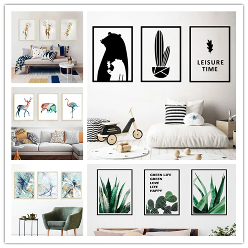 Diy Golden Flower Cactus Deer Bear Wall Sticker Living Room