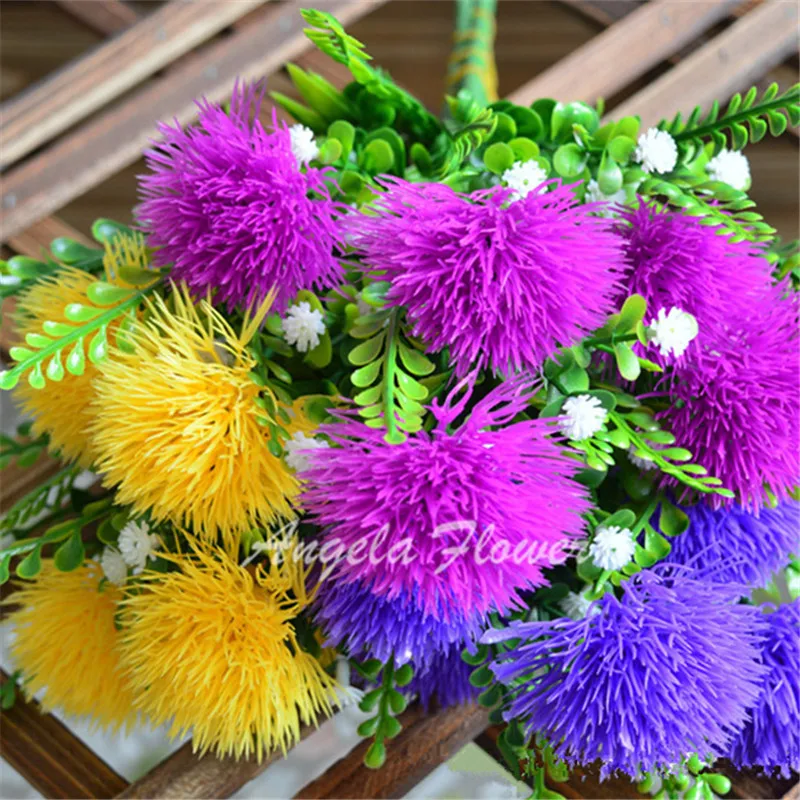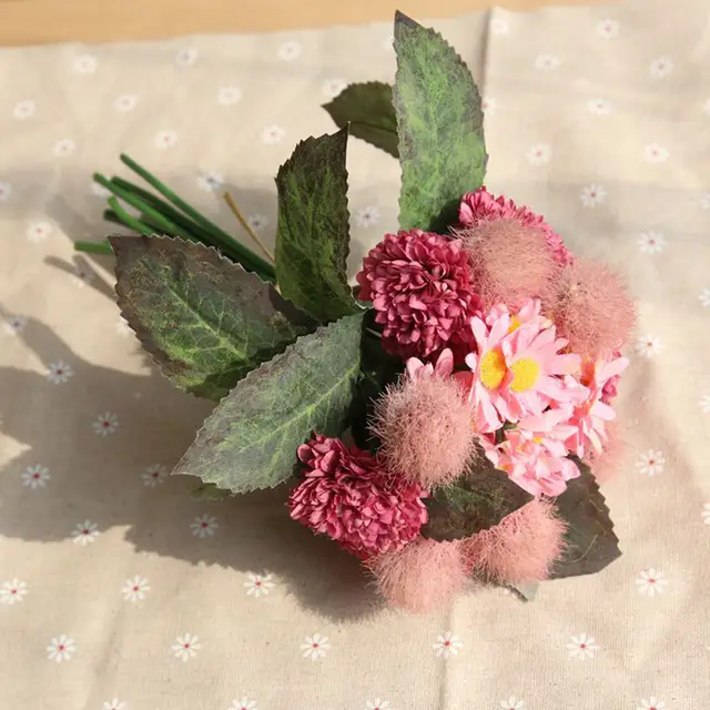 Colourful Cute Silk Ball Chrysanthemum Flower Fake Artificial