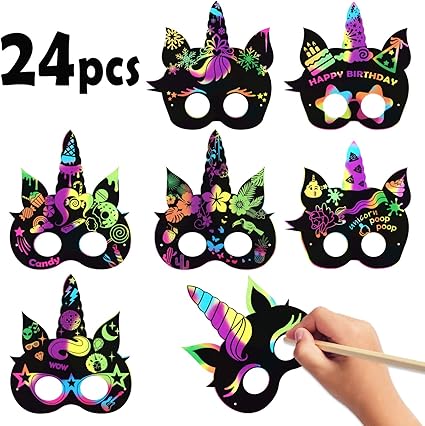 Amazon Com Mallmall6 24pcs Unicorn Mask Rainbow Scratch Art
