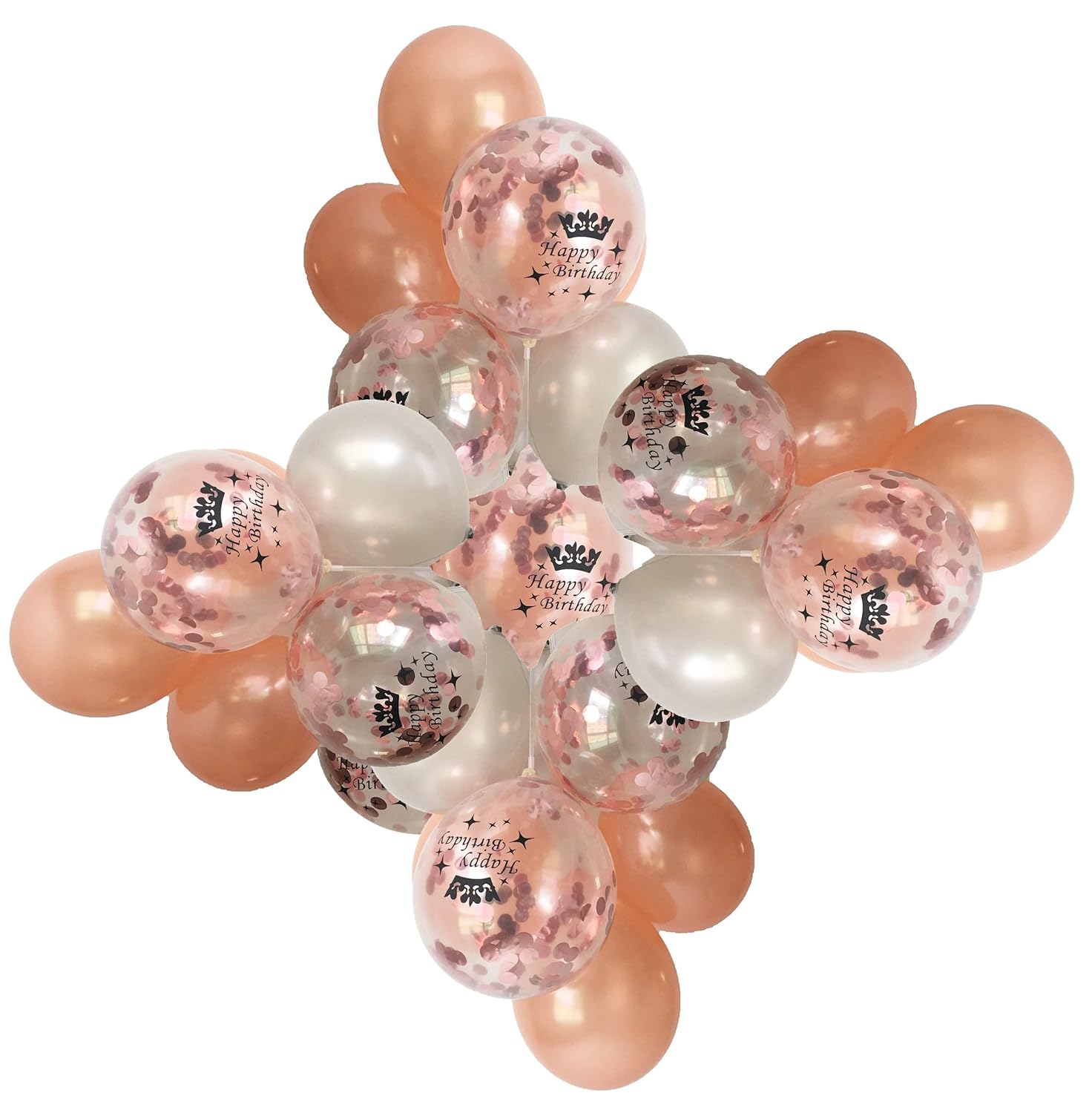 Happy Birthday Balloons Confetti Rose Gold Silver Balloon Party