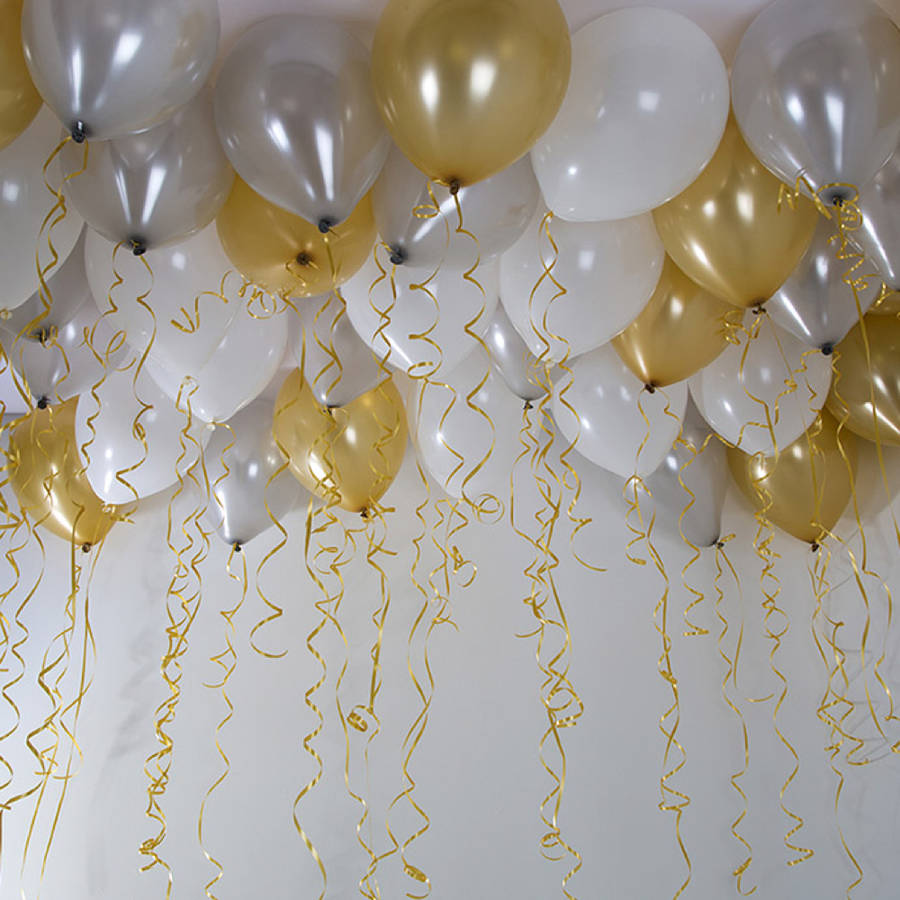 Set Of Gold Silver White Transparent Helium Balloon Isolated In