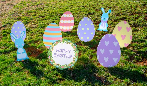 When its easter and spring season has started to set in its just the perfect excuse to plan an outdoor partywho needs to be indoors when you can have an outdoor easter brunch with your family and friends. Joyin 8 pieces easter yard signs decorations outdoor bunny chick and eggs yard stake signs easter lawn yard decorations for easter hunt game party supplies decor easter props. Etsy is the home to thousands of handmade vintage and one of a kind products and gifts related to your search.