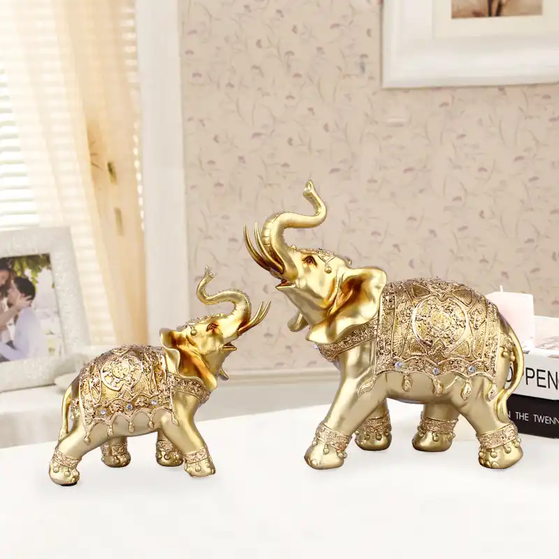 Fengshui Elephant Figurines Home Decoration Lucky Elephant Golden