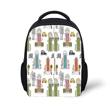 Kids School Backpack Kitchen Decor Vintage House Doors Art Pattern