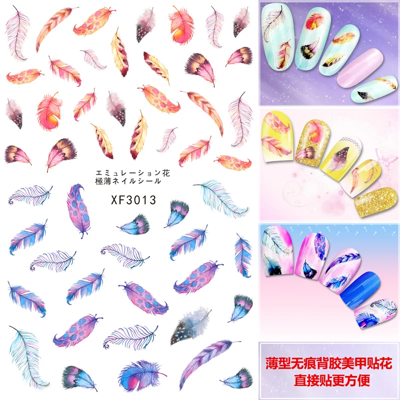 Hot Nail Sticker Feather Back Glue Symphony Gradient Colorful