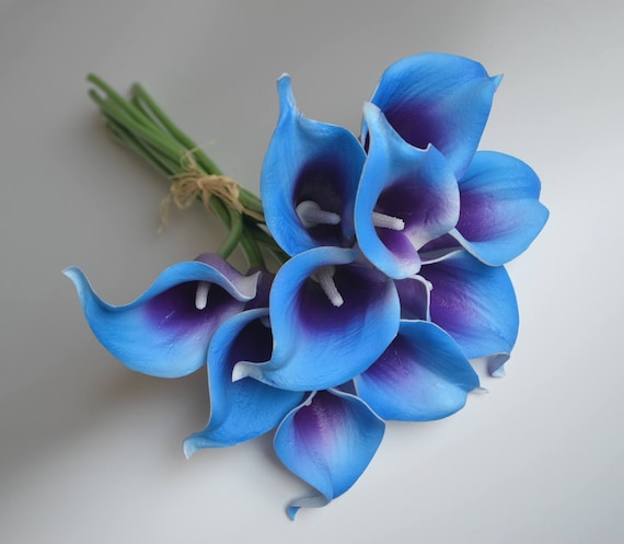 10 Dark Royal Blue Calla Lilies Real Touch Flowers Diy Silk Etsy