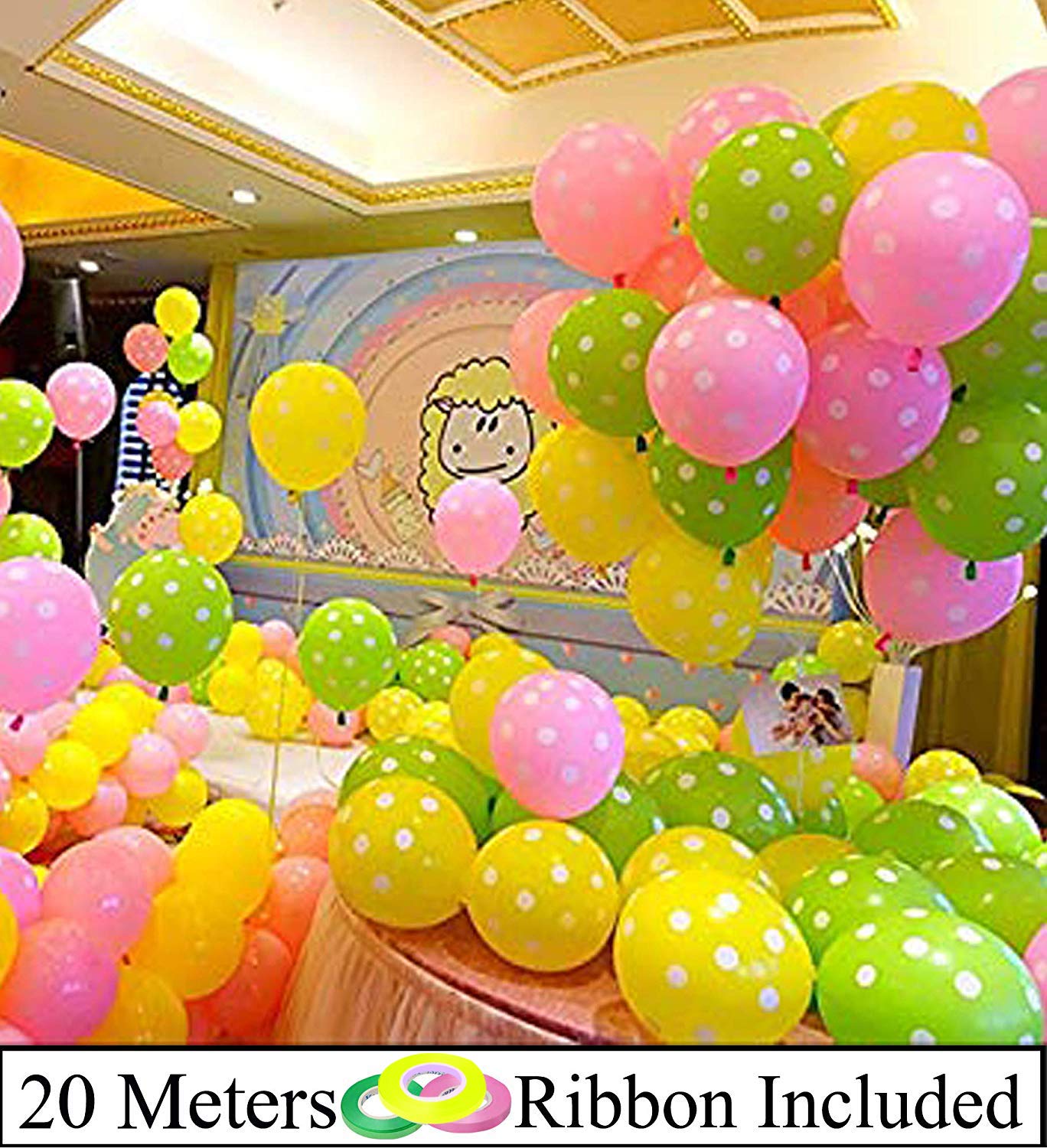 Amfin 12 Inch Pack Of 50 Pink Green And Yellow Polka Dot