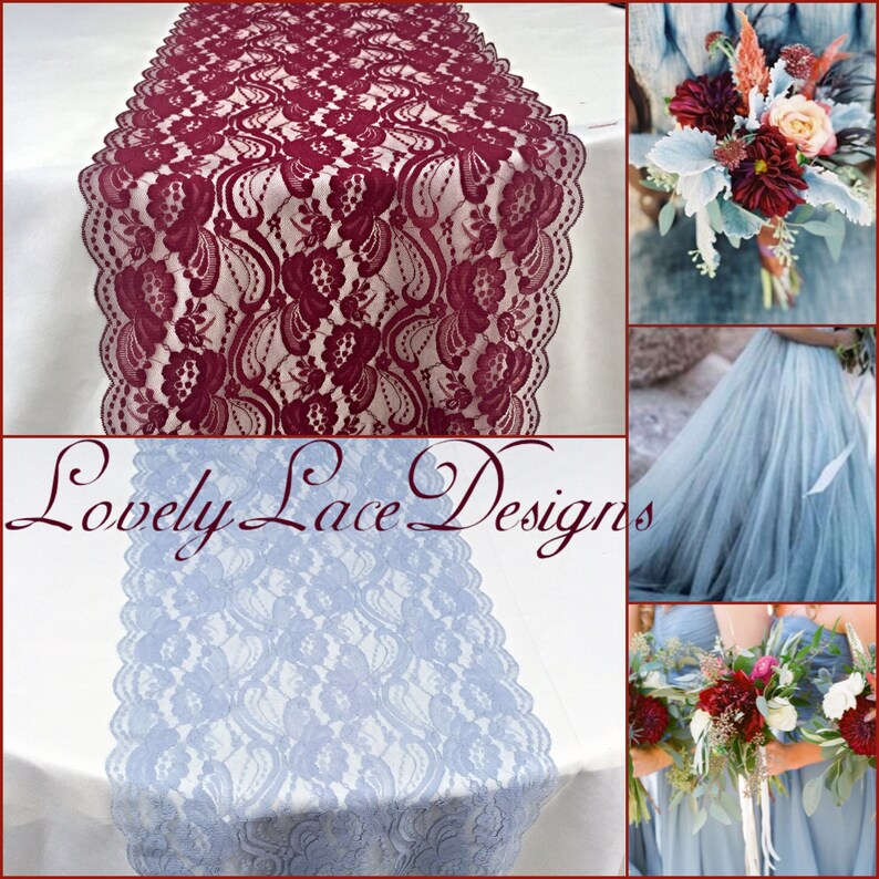 Wedding Lace Table Runner Dusty Blue 12wide Wedding