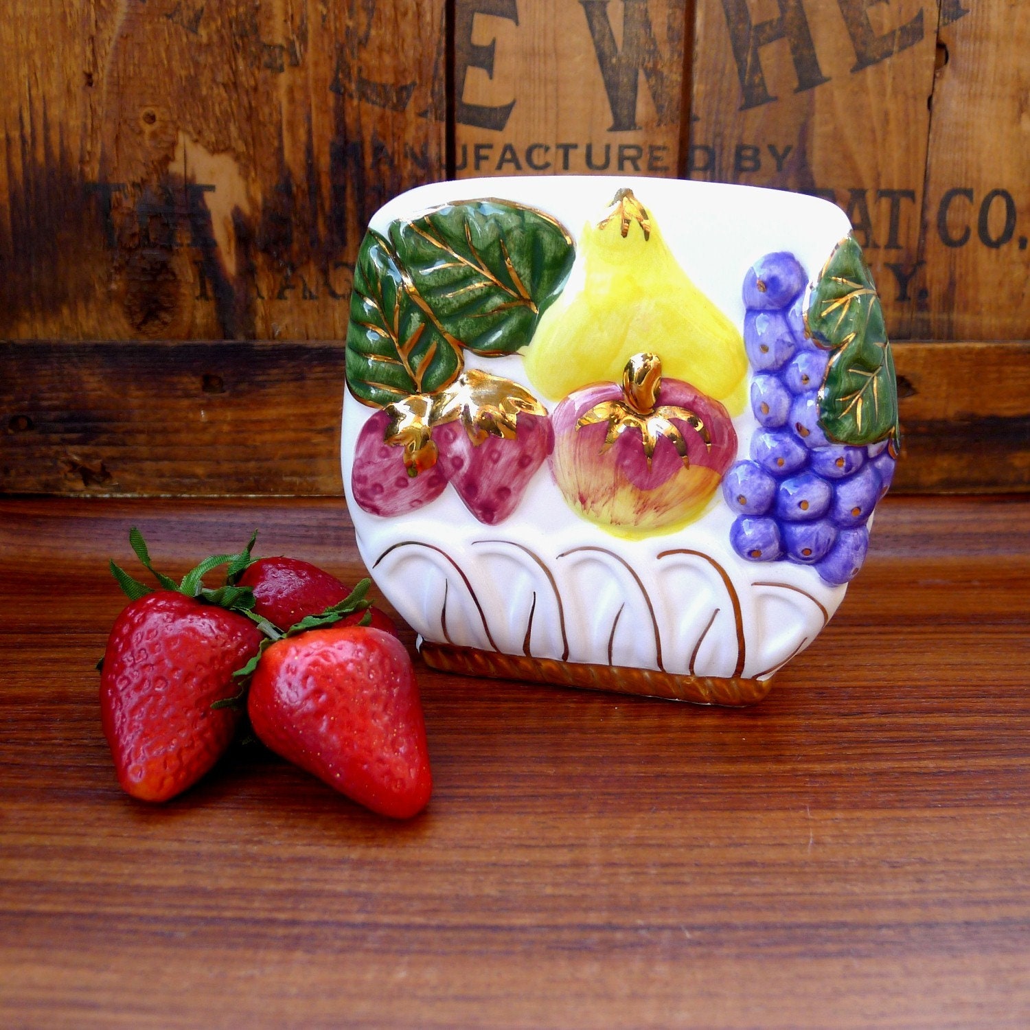 Retro Fruit Decor Napkin Holder Apple Pear Grapes In A Basket Etsy