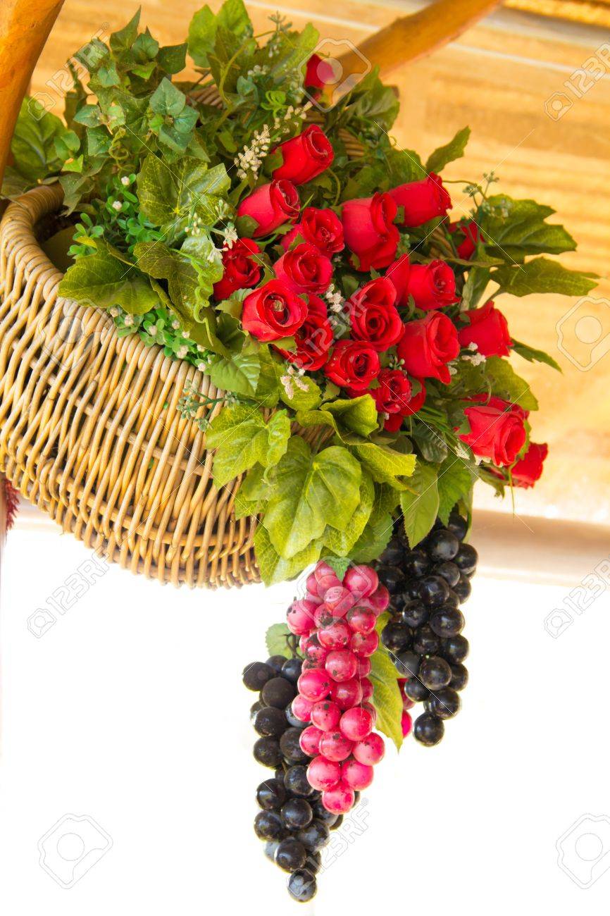 Fruit And Flower Basket For Decoration Stock Photo Picture And