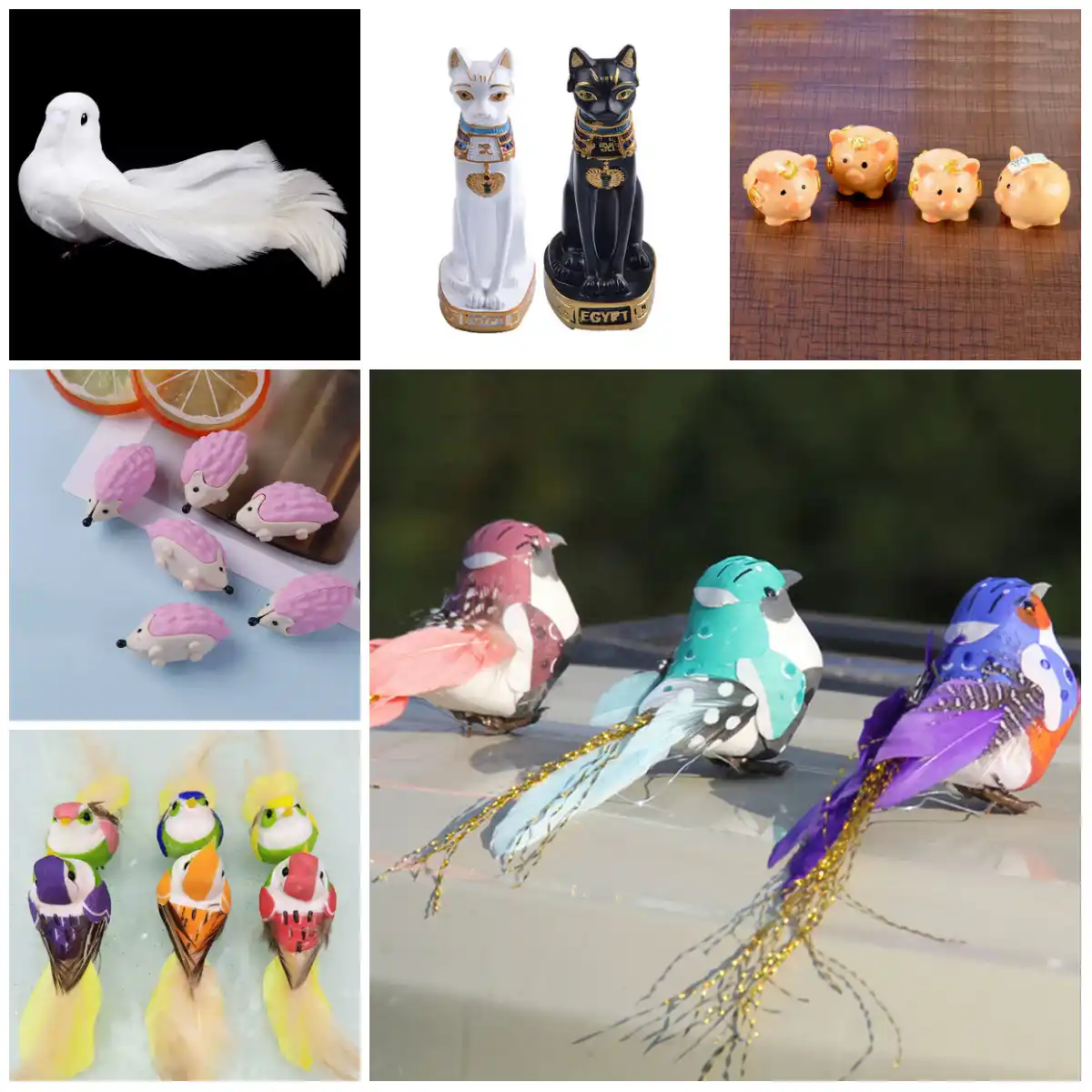 Diy Artificial Feather Bird Pig Egyptian Cat God Hedgehog White