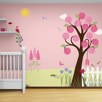 Girls Wall Decor Flower Garden Theme Wall Mural Wall Stencils