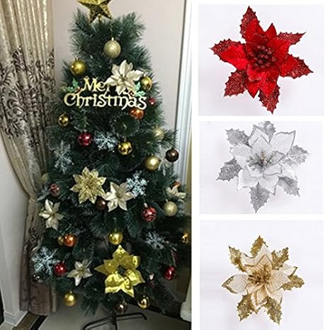 Buy Generic Gold Christmas Flowers Tree Decor Pendant 17cm Gold