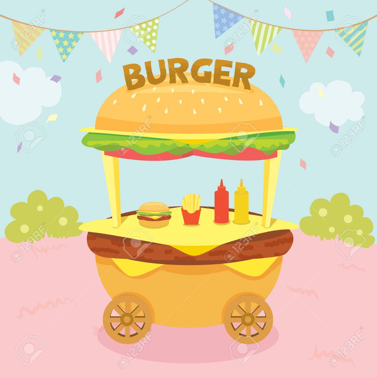 Illustration Vector Of Hamburger Cart Shop Decoration With