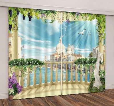 3d Balcony Venice Dome Church Blockout Photo Curtain Printing