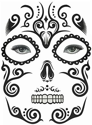 Sugar Skull Face Temporary Tattoos Day Of The Dead Halloween