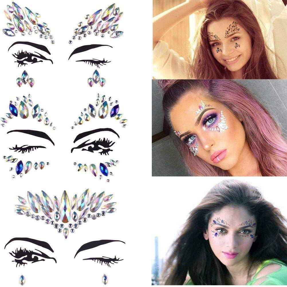 Okasu 3 Pcs Rhinestone Face Gems Sticker Face Jewels For Face