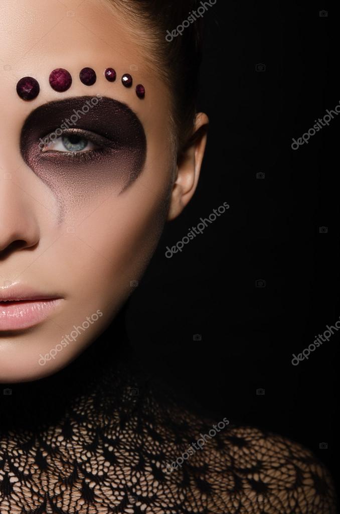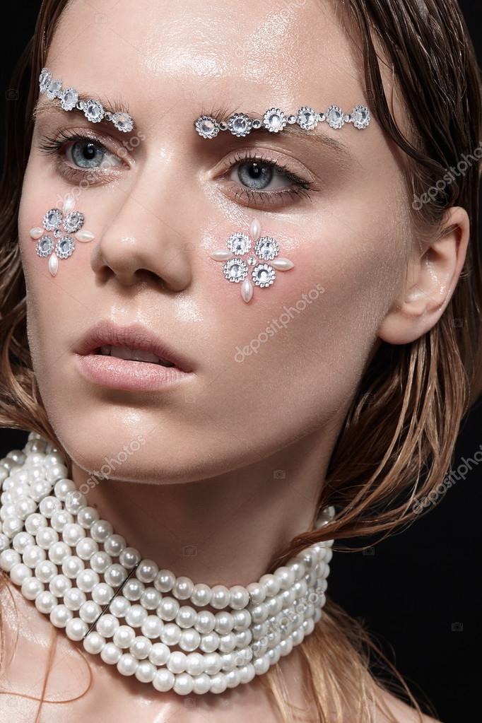 Beautiful Woman With Face Art And Decorations Studio Shot Stock