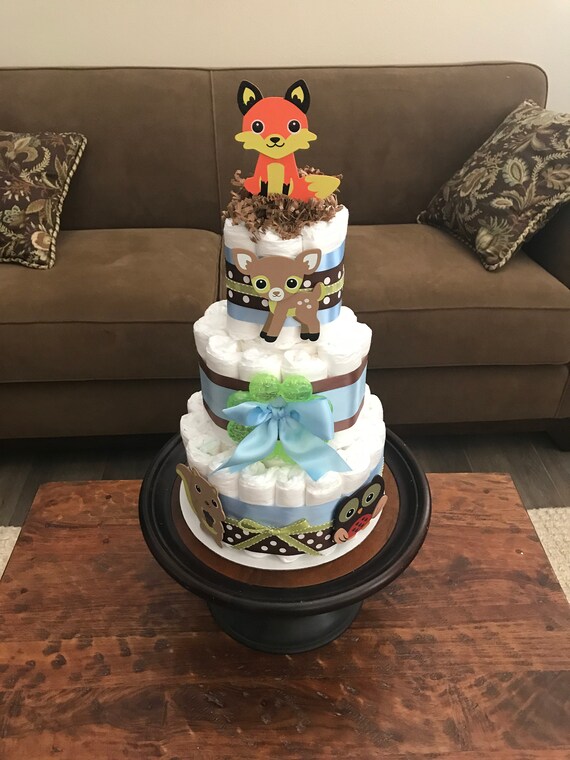 Woodland Fox Baby Boy Shower Diaper Cakes Baby Shower Etsy