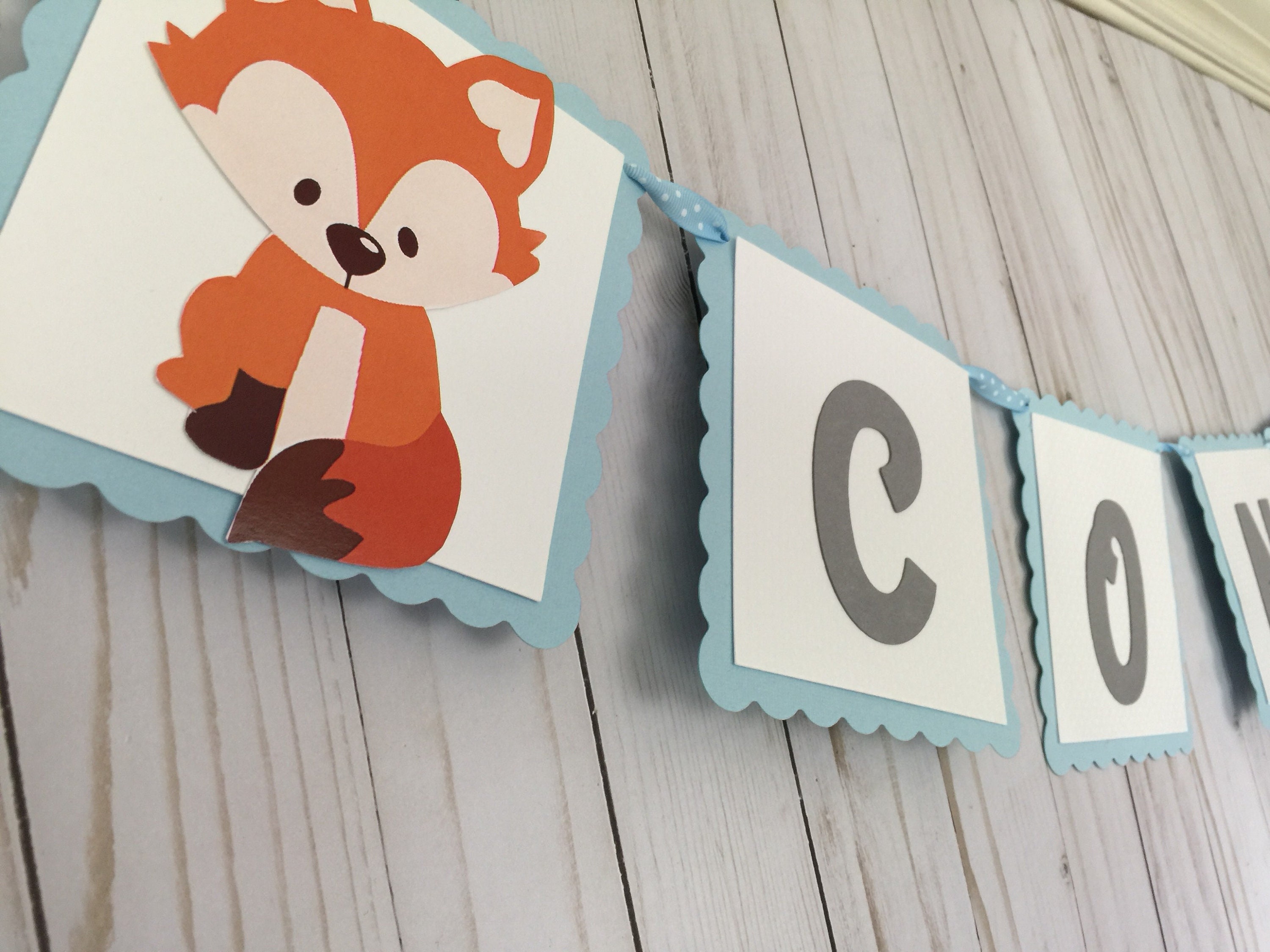 Woodland Creatures Fox Baby Shower It S A Boy Banner Forest Animal