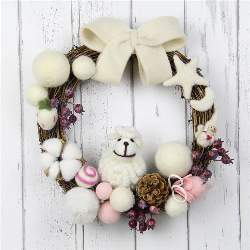 25cm Handmade Wool Felt Moon Star Christmas Wreath Felt Garland