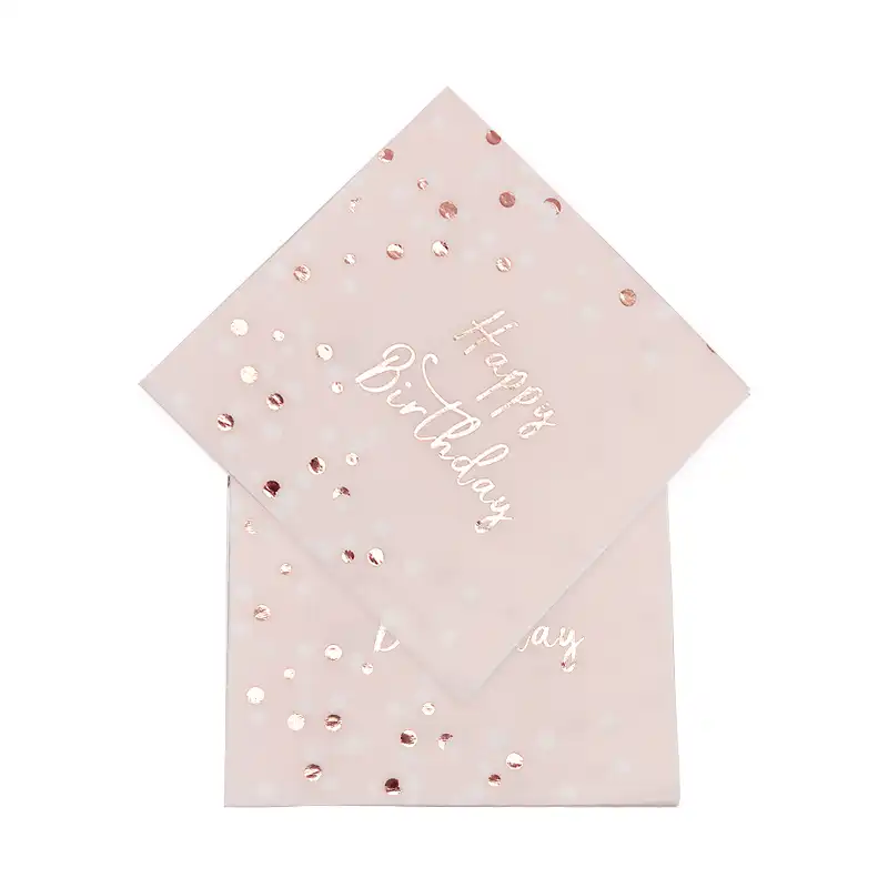 16pcs Square Golden Dot Pink Princess Happy Birthday Letter Napkin