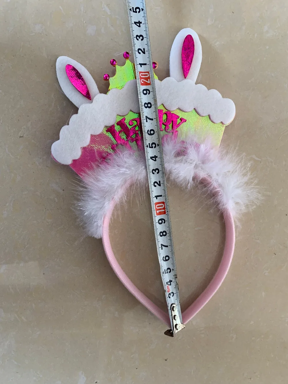 Girls Pink Happy Birthday Headband Rabbit Ear Feather Headwear