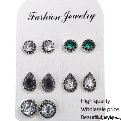 Jewelry 6 Pair Set Metal Pearl Earrings Exaggerated Circle Ear
